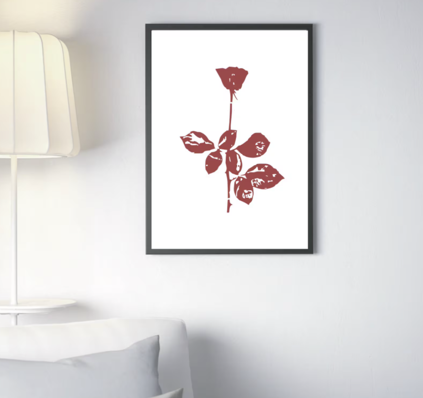 A4 Depeche Mode inspired Rose from the iconic Violator album, this is a print on quality poster paper mounted in a black picture frame.